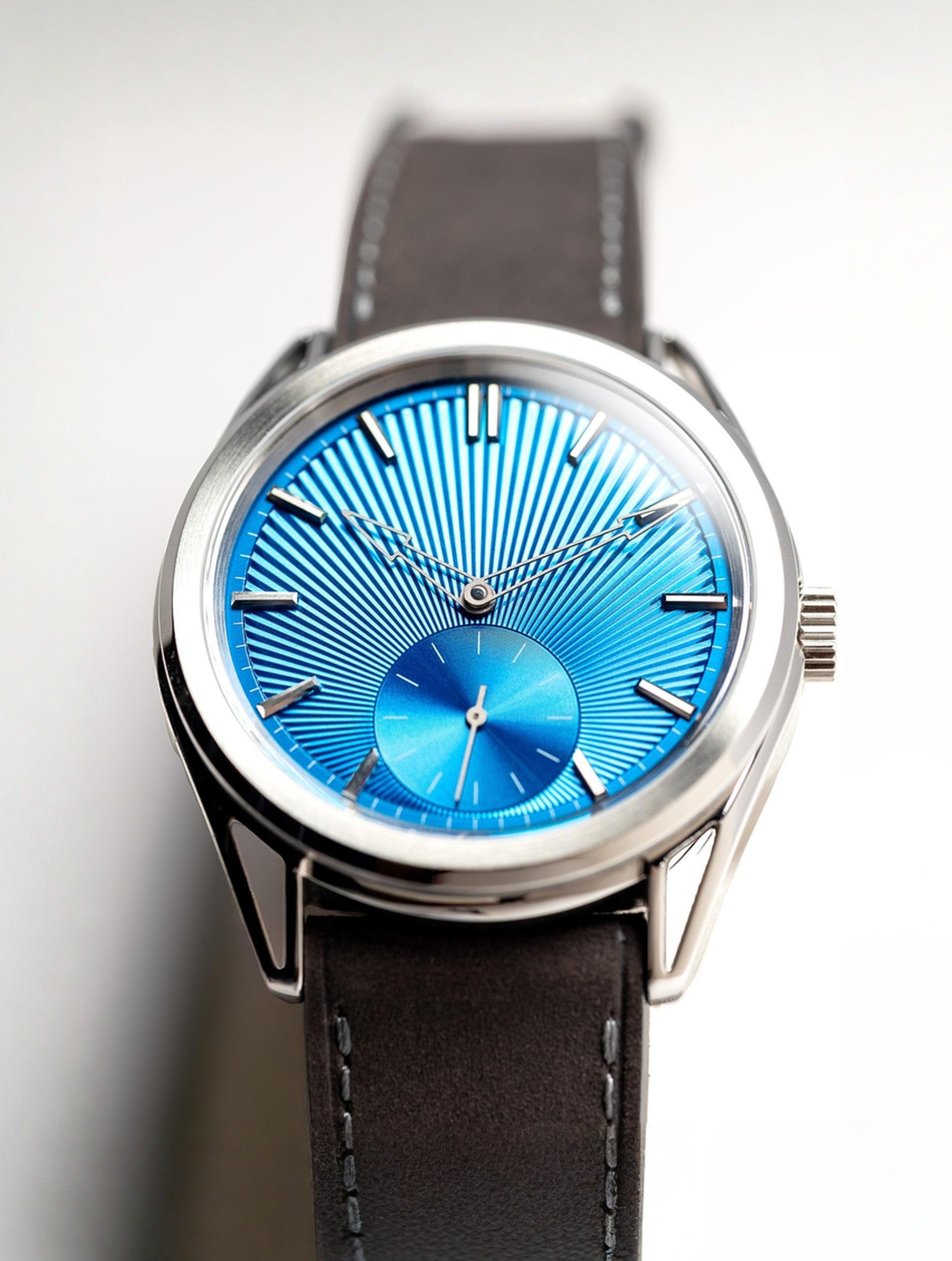 A contemporary take on a classic layout. The three-dimensional radial dial challenges the notion of a small seconds layout being traditional. Skeletonized hands create a modern feel while complementing the skeletonized lugs. The 39 mm stainless steel case is a refined balance of proportions.